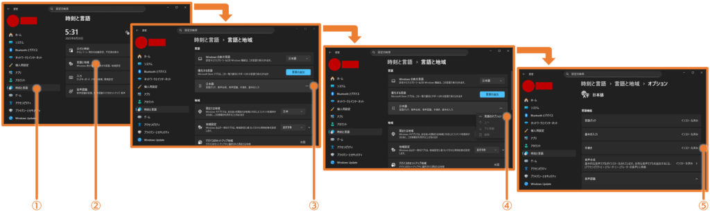 解決の手順を説明する.Windows上の「設定」において,「時刻と言語>言語と地域>『日本語』欄の右端にある『・・・』>言語のオプション」へ進み,「手書き」をダウンロードする(図2).